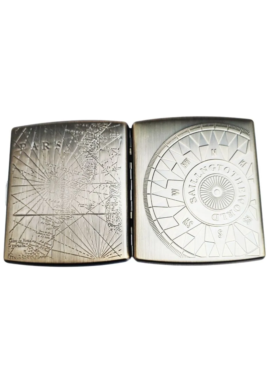 Ruipai Brass‑Body Cigarette Case – Compass Design