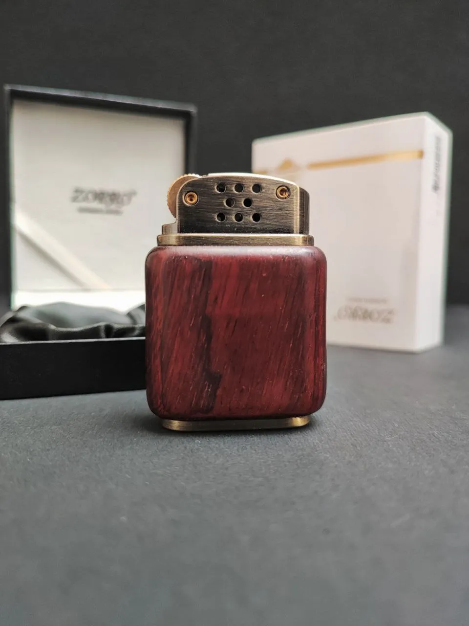 فندک بنزینی زرو (zorro) بدنه چوبی رنگ قهو ایی
