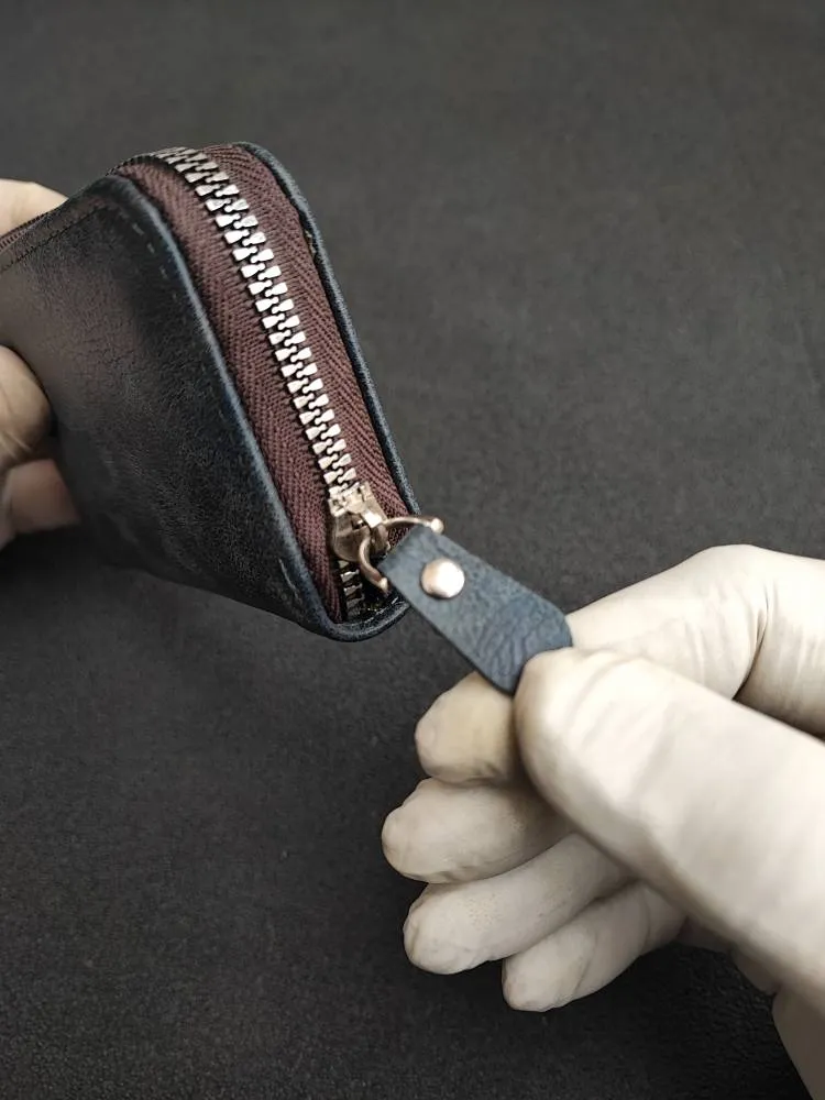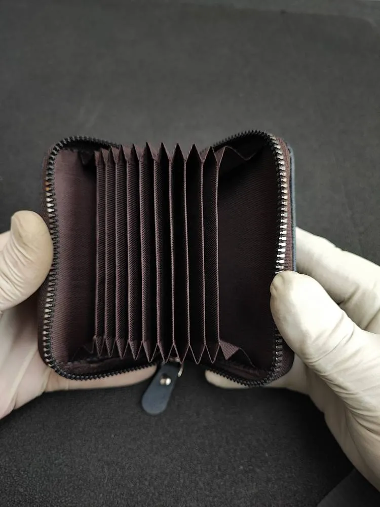 Leather and fabric accordion zipper card case code 3460