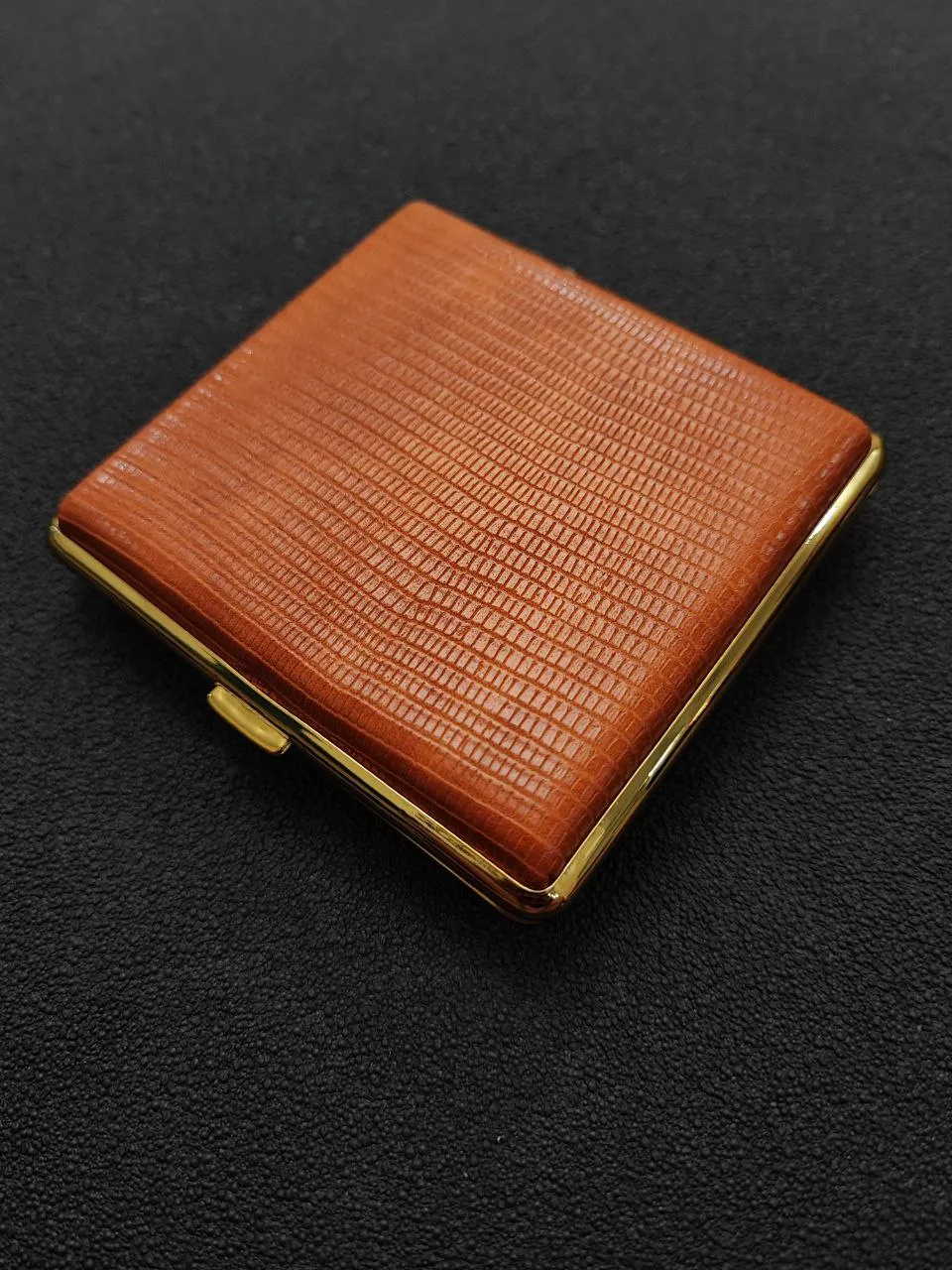 Gopai leather cigarette holder, chrome plated body, brown color