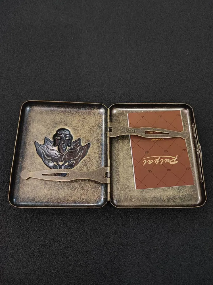 جاسیگاری برند روپای (Ruipai) با بدنه تمام برنجی و طرح برجسته جمجمه، یک انتخاب جسورانه و خاص برای کلکسیونرها و افراد شیکپوش است که به جزئیات اهمیت میدهند.