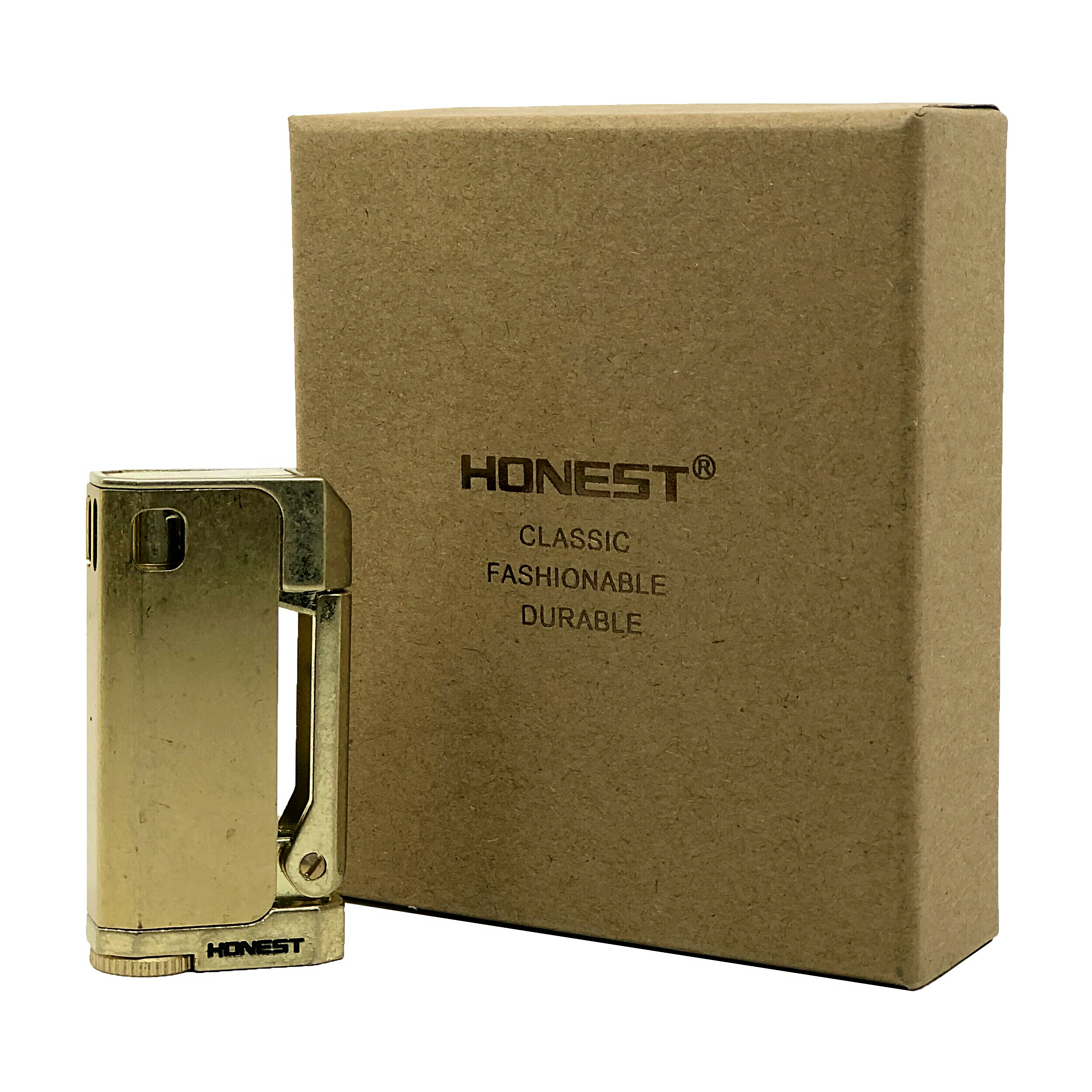 فندک بنزینی HONEST مدل ترنچ (Trench Vintage) با بدنهای از برنج خالص، ترکیبی از اصالت، کیفیت و طراحی کلاسیک است. این فندک با الهام از فندکهای نظامی قدیمی ساخته شده و حس واقعی وینتیج را در هر جزئیات خود به نمایش میگذارد.