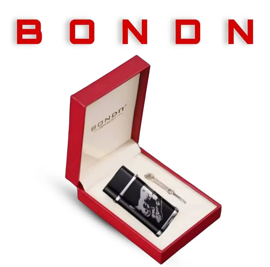 فندک گازی بندن(bondn) بدنه لاکی طرح گاو وحشی رنگ مشکی نقره ای